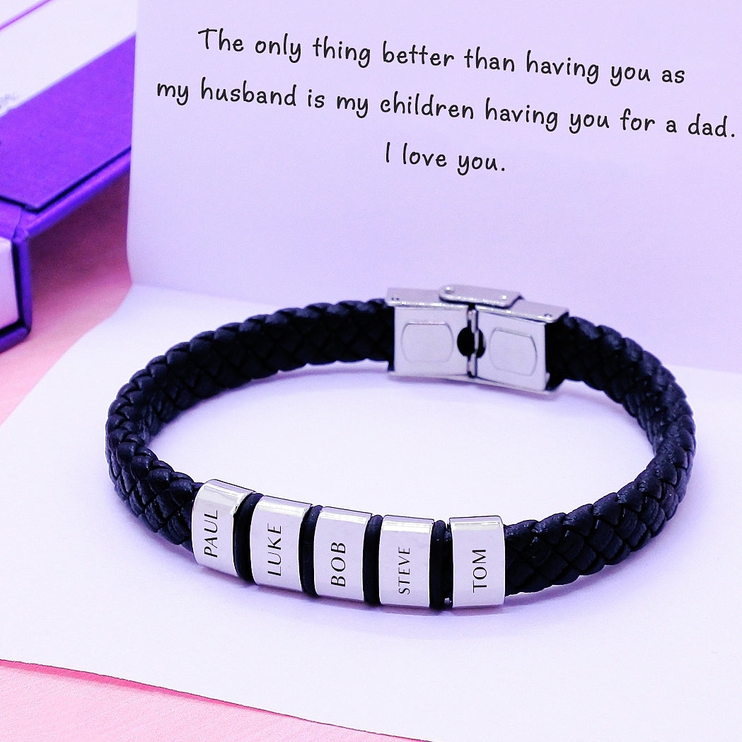 “Such a good bracelet got for my husband with our kids names on it, he wears it all the time“
