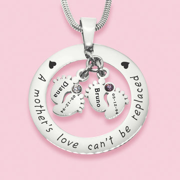 Cant Be Replaced Necklace - Double Feet Birthstones
