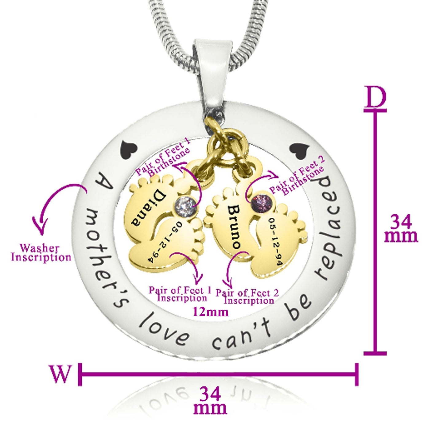 Cant Be Replaced Necklace - Double Feet Birthstones - Mothers Jewellery by Belle Fever