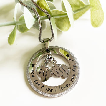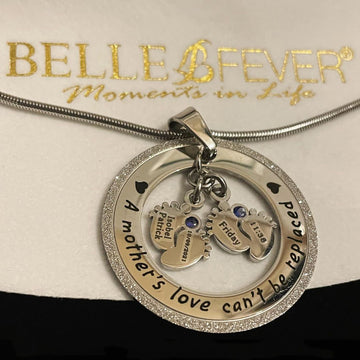 You know, your kids are always going to be your little babies. No matter how big they get, they're always going to be the ones that have the deepest footprints in your heart. That's why I'm the best necklace. I'll help you remember their once tiny little footsies. You can inscribe their names and birthdates on each of my feet. And as your family grows, you can add them to the necklace. I'm here to remind you that a mother's love Can't Be Replaced. So choose me for yourself, or choose me for your mumma. Remind her how much you cherish her.
