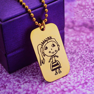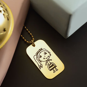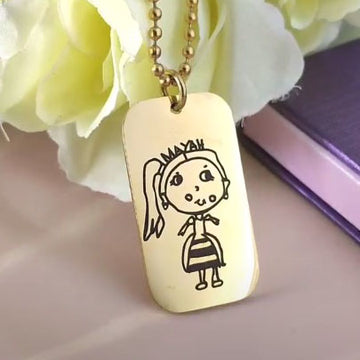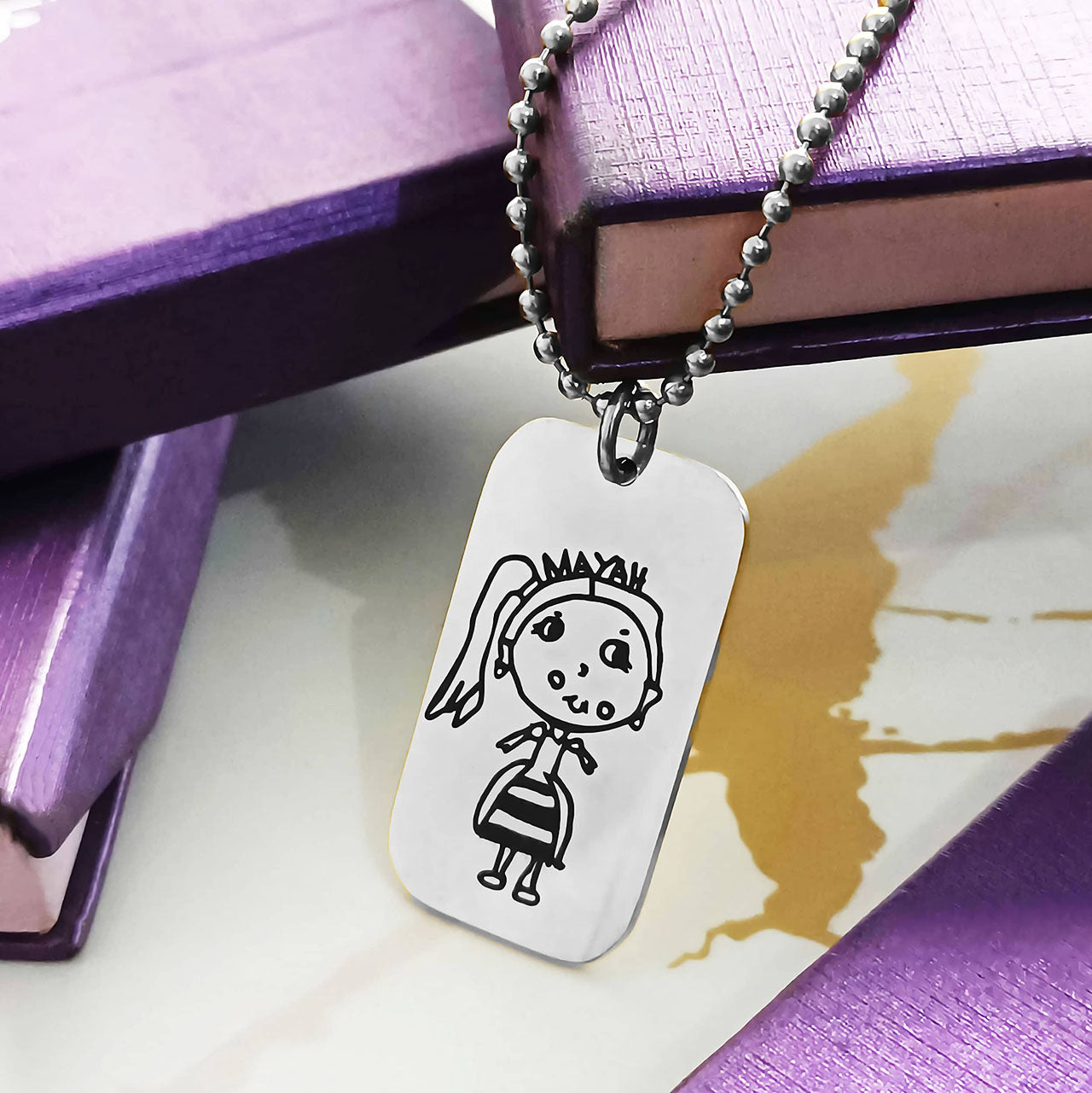 This Custom Kids Drawing Dog Tag Necklace is a perfect gift for any special occasion like birthdays, Mother's Day, Father's Day, or Christmas. Celebrate your child's creativity and capture a special memory that will last a lifetime. Our necklace is hypoallergenic, non-tarnishing, and made of high-quality materials to ensure it's a long-lasting and durable keepsake.