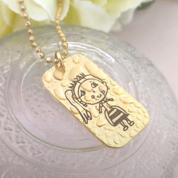Custom Kids Drawing Dog Tag Necklace - Kids Drawing Jewellery by Belle Fever