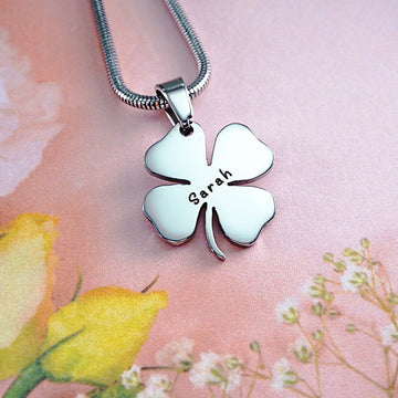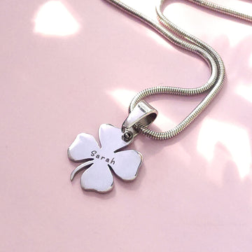 Well I'm the lucky pick (excuse the pun). I'm the Four Leaf Clover Necklace. I'll bring good things your way wherever you go. Make sure you personalise me with a name, word or special date.