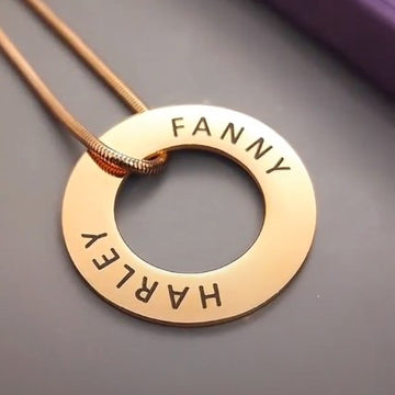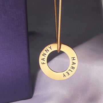 With the ability to inscribe both your names, this necklace will surely melt your loved ones' heart. The round shape of the washer represents never-ending love, making it an ideal gift for any occasion. Available in Silver, Gold or Rose Gold, this necklace will match any outfit and style.