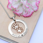 Paw Prints Washer Necklace - Memorial & Cremation Jewellery by Belle Fever