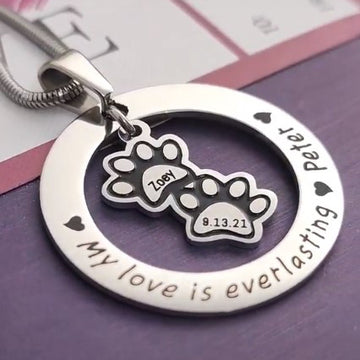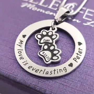 This necklace is a wonderful way to honor the memory of your beloved pet, and it's a beautiful and unique piece of jewellery that you can wear every day. The paw print design symbolises that your pet won't go anywhere and will always stay in your heart.