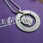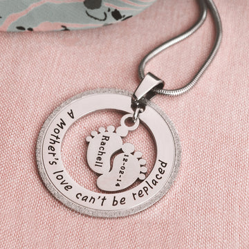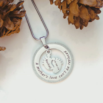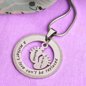 "Found the single feet can’t be replaced necklace. It has my little boy's details on the feet - his name and date of birth. I have had so many people comment on it and that it's a beautiful sentiment to my little boy."