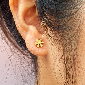 These earrings are delicately crafted to resemble a snowflake with sparkling intricate details that capture the beauty of the winter season.