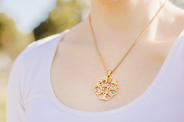 This necklace is available in Silver, Gold, Rose Gold or Two tone, and features a washer with a tree in the middle, adorned with birthstones on each of its leaves, making it very beautiful, graceful, unique, and shiny.